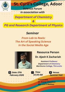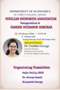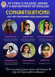 My alma mater, St Cyril's College, Adoor holds a special place in my heart as it laid the foundation of my journey towards personal and professional success. As a BA English Language and Literature passout student from the 2010-2013 batch, the college provided me with a solid academic background and a supportive environment to grow. The faculty members at St Cyril's played a pivotal role in shaping my academic pursuits and guiding me towards my current position as an Assistant Professor of English at the prestigious Department of English and Other Indian and Foreign Languages at Vignan University, Guntur, Andhra Pradesh. Their mentorship, dedication and passion for teaching instilled in me a deep love for the subject and a commitment to excellence. Moreover, St Cyril's College not only honed my academic skills but also nurtured my leadership abilities. Through various opportunities to organize events, lead discussions, and collaborate with peers, I developed valuable leadership skills that I now apply in my role as an Assistant Professor. The college provided a platform for me to explore and enhance my capabilities, empowering me to take on challenges with confidence and determination. In hindsight, I'm grateful to St Cyril's College for the formative years that have prepared me for a fulfilling career in academia and for instilling in me the values of continuous learning, dedication and leadership. The college will always hold a special place in my memory as the place where I discovered my true potential and found my true calling in the field of English Language and Literature.