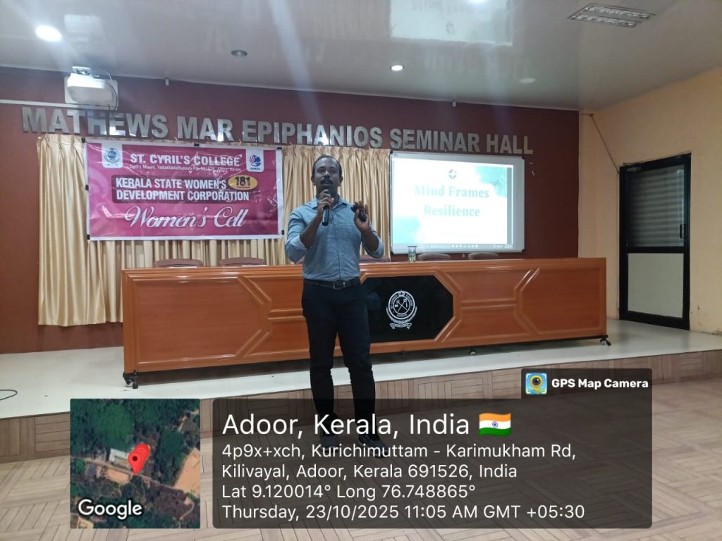 Mental health awareness class led by Dr Fresnal Das, Assistant Professor, Department of Psychology Fatima Mata College Kollam.